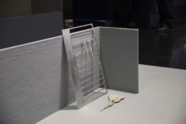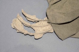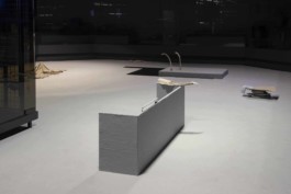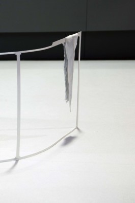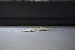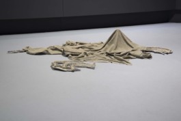 materials: carpet, concrete, synthetic fabric, sand, glazed deer bones, silicone, aluminium.