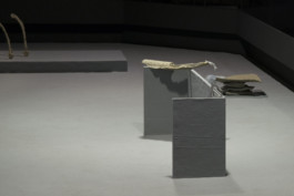 Keeping a constant tension between material production and the interpretation and transmission of information, For All the Time, for All the Sad Stones aims to question models of thought towards a post anthropocentric understanding of time and history. Questioning the abstract definitions of materials and daily objects which are becoming concepts with the raise of the digital, the installation is centred around a video with sound, and includes a set of sculptural objects made of different materials including sand, silicone and deer bones.